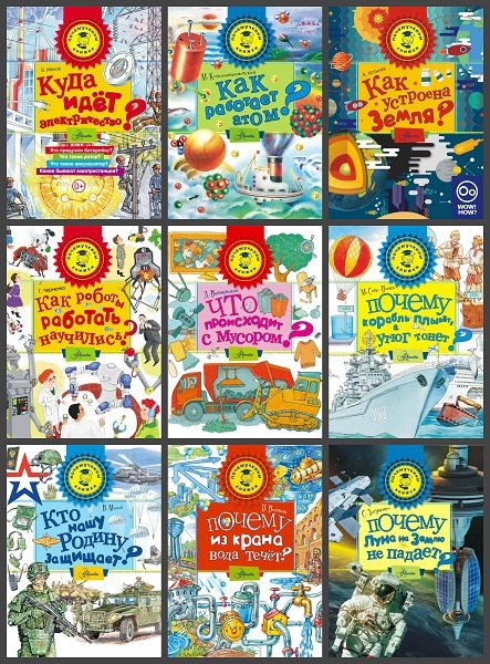 В серию (49 книг) - «Почемучкины книжки» вошли произведения исследователей и популяризаторов науки для детей младшего школьного возраста. В них простым и увлекательным языком авторы знакомят детей с физикой, геологией, химией, ботаникой и другими науками. На страницах книг найдутся ответы на вопросы о том, как общались люди до появления телефонов, каким образом зародилась Земля, как наш глаз различает цвета, а хищники могут дружить с травоядными, зачем кормить бактерий и каким было самое первое зеркало, для чего хвойным деревьям смола, почему летучие мыши могут парить в воздухе с закрытыми глазами, кто жил на Земле сто миллионов лет назад, и многие другие.